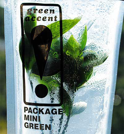 「パッケージ・ミニ・グリーン」は画期的な観葉植物商品。完全包装された中に(一種の)生態系ができることでこの状態で約1ヶ月、植物は生き続けます。それはグリーンの流通革命、雑貨感覚で扱えます。お買いになったお客さまはパッケージをカット残った部分が鉢になります。この商品にご興味のある方は石川までご一報を。