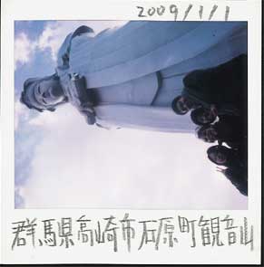 明けましておめでとうございます。‥‥‥‥‥去年(昨日)お話しした通り、我が家は群馬県の高崎で、にぎやかに新年を迎えました。ノンちゃんこと、ヒロコのお姉さん家族のもとでです。お姉さんは薬剤師で、こちらで薬局を開いてらっしゃるんです。‥‥‥‥‥‥‥今朝は早起きをして初日の出を拝みに行きました。参加者は僕とノンちゃんとご主人、その他の三人、ヒロコとミズキ、そして従姉妹のマユちゃんは爆睡中でありました。‥‥‥‥‥‥午後からヒロコ達のお母さんのいる東京・中野に(ノンちゃんちの車で)Uターン、せっかくの高崎なので観音様に初詣しました。遠く列車から眺めることはあっても、足下まで来る機会はめったにあるもんじゃありません!‥‥‥‥‥‥‥‥‥‥‥‥高崎白衣大観音(たかさきびゃくえだいかんのん):1936(昭和11)年、実業家井上保三郎によって建立された鉄筋コンクリート製の大観音で、高さ41.8m、重さは5,985t。原型製作は伊勢崎市出身の彫刻家森村酉三。その原型を自転車で運んだのが元首相田中角栄であったという逸話もある。‥‥‥‥‥‥‥‥‥でかい観音様を入れての記念撮影は思いっきりローアングルじゃないと入りません。画面が横になったのは寝ころんで撮ったからです。‥‥‥我が親族の「生き四観音」と大観音さまのファイブショットでした。イイ年になる予感がします。