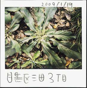 昼間だけの話しですが、今日はちょっと暖かだったであります。沖縄出身のマチダは「もう寒さはこれくらいで、これから暖かくなるんでしょ。」と、希望的観測を述べましたが、アキヤマと僕は「な〜に言ってんの!これからだよ本当の寒さは。」と、け落としました。そう、今から2月にかけて冬将軍はやってくるのであります。‥‥‥‥‥‥‥‥‥冬の露地にご覧のような放射状にはりついた植物を見かけるでしょ?これロゼッタ(状態)と言って、前年の終わりに発芽した植物が「冬の寒さをじっと堪えている様」なんです。暖かくなると真ん中から茎を伸ばすのです。子供の頃、自閉症的で、しゃがみ込んでじっと植物を見るのが好きだった僕は、この(けなげな)ロゼッタ状態の草を愛しておるのであります。これはヒメジオンでしょうか?ハルジオンでしょうか?タンポポも綺麗だし、オオマツヨイグサなどは見事です。