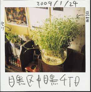 冬は鍋です。ベースにダシになるような、魚介類、肉類があれば、その他に各種野菜を、ただ刻んでぶち込めば(たいていの場合)おいしいお鍋が出来上がります。野菜はと言えば、ま、長ネギはかかせないでしょうが、白菜、春菊、三つ葉、ゴボウ、大根、ニンジン、椎茸、エノキ‥‥何を入れてもよろしいでございます。そんな「何をいれてもヨロシイ野菜」のことですが、我が家ではセリを多用するのであります。‥‥‥‥‥食べる所を食べてしまった残りの、セリの根っこを女房はガラスに入れて水栽培、我が家の窓辺で(観賞用として)愉しむのです。それはどんどん若葉を伸ばし買って来たときの半分くらいまでになると、またお鍋で食べたりもするのであります。(ときどき固くて食用に適さないこともありますが)‥‥‥‥はい、ポラリは我が家の窓辺、数日前に活けたセリと、右側のは豆苗(とうみょう)、発芽野菜とかスプラウトと呼ばれる(食べる)野菜の芽、豆苗はクリーンピースの芽なのだそうです。こちらは(セリとは逆で)まず鑑賞用として金魚鉢に活けてみました。キレイです。「だいぶ大きくなちゃったね。」「このまま鑑賞用として「ジャックと豆の木」にしちゃうか、収拾の取れなくなる前に食べちゃくか‥‥??」ちょっと悩むヒロコでありました。