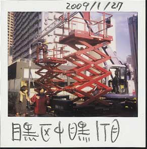 いつものように朝の散歩をしていて、フォトジェニックな機械にでくわしました。赤く塗られたパンタグラフ型の高所作業台(?)です。重そうですが自走のためのキャタピラがついています。工事用の機材が赤やオレンジ、黄色に塗装されているのは、もちろん危険防止のため、その存在をきわだたせるためなのです。これ、ロシア構成主義のポスターのようで好もしく思った次第です。‥‥‥‥‥この工事現場、例の(山手通りの地下を池袋から品川まで走る)首都高速中央環状線のもの、246とのクロスポイント、大橋から池袋にかけてはかなり進んでいますが、いよいよ大橋から品川にかけての工事が始まったのであります。きっと我が社の近辺もうっとおしくなるのでしょう。