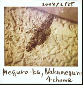 先日のことです。事務所マンションの通路の壁にシミを見つけました。シミだと思ったものを良く見りゃ蛾(が)でありました。夏の夜など蛍光灯を目指してやって来る蛾を良く見ますが、この寒い冬に見るのはめずらしいじゃありませんか。それから2週間ほどが経ちました。はい、今日もおりましたです。これ、冬眠のたぐいでしょうか、まったくシミのごとく動かずにへばり付き続けております。何という種類の蛾か知りませんが、けっこうエグイであります。左右6cmほどでしょうか。‥‥‥‥‥ちなみに英語で蛾は「モス」です。スペルは(はい、舌を噛んで)MOTHです。バーガーやさんはモスはモスでも(舌を噛まずに)MOS