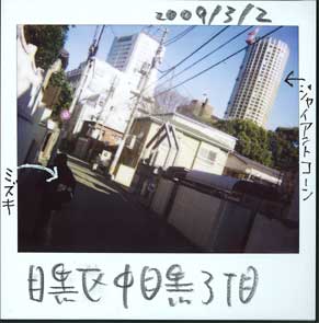 久ぶりの晴天です。うれしいであります。‥‥‥‥‥‥‥‥‥‥‥‥いつも僕たち(夫婦)よりも早く家を出る、我が家の女学生、今日はぐずぐずしていました。「こいつ遅刻するんじゃないの?」と思っていらた「今日は遅くていいんだよ。」と、言うではありませんか。実は明日が卒業式、(彼女はまだ2年生です)今日はその予行練習、終わったら帰ってくるのだそうです。(私の場合)はげしく昔なのでおぼろげな記憶ですが、そんな(授業のない)日はルンルンだった気がします。‥‥‥‥‥そんなワケで僕のルーチン、中目黒駅までのウォーキング、彼女と一緒に出ました。「お、ミズキ。あのジャイアントコーン、ほぼ出来上がりだね。」