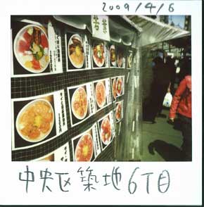 午前11時の約束で昭和通り沿い、日本橋本町にある会社に(アキヤマと)打ち合わせに出かけました。当然のことながら終わったのはお昼時、(留守番の)マチダに電話を入れました。「今、終わったんだけど、どっかでメシ食べて行っちゃうわ。」‥‥‥‥‥‥‥‥築地の外市場にきました。「天ぷらをのせた、あの深大寺そば、どお?」と、僕。「せっかく築地なんだから、マグロ丼にしましょうよ。」と、アキヤマ。アキヤマ案を選びました。僕は「マグロとあぶり穴子丼」アキヤマは「サーモンとヒラメの胡麻醤油丼」を食しました。おいしかったであります。並んでいるとき店のオヤジと話しをしました。「ここ(市場)あっちの埋め立て地の方に行っちゃうんでしょ?」「ああ、市場は行くことが決まっているんだ。でも外市場はここに残ると思うよ。ま、純然たる観光地になるってことかな。」‥‥それって、ちょびっとさみしい気がする私でした。市場あっての外市場ですもんね。