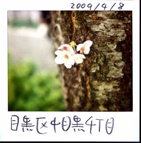 すっかり春です。嬉しくなっちゃいます。‥‥‥‥‥‥‥‥今日もランチの後、目黒川沿いを散歩しました。木にはまだ沢山花が残っていて、それでもはらはらと散り始めた今が、最高の見せ場です。(今日は春休み最終日の娘も一緒でした)その「はらはら」を3枚、空中でつかむと願い事が叶うのだとアキヤマが言うもんだから、そりゃもう大騒ぎ。落ちてくる花びらって、ひらひらとあらぬ動きをするんで、そりゃもう難しいんです。(言い出しっぺの)アキヤマがだんぜん上手いのでした。‥‥‥‥‥みんなが騒いでいるあいだ僕はポラリっておりました。ご存知ですか?時々、(枝からでなく)幹から直接花が咲いているコトを。これって妙で、面白いです。