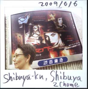 娘の学校は土曜日もあるので、妻と犬と僕の土曜日です。‥‥‥妻が言いました。「映画館で映画見ない?」そういえばずいぶん映画館に足を運んでいません。「あ、いいかもね。」すごく見たいと思っている映画があったわけではないので(新聞を見て)「これにしようか。」と、「ザ・スピリット」というのを選び、渋谷に見に来ました。なんせ老夫婦は二人で2000円で見られちゃうのです。‥‥‥‥‥見ようとしている映画に関して全く予備知識の無いのって、当たった場合は大当たり、はずれた場合は「もう少し調べれば良かった。」であります。これは(老夫婦にとって)後者でありました。(ものの好き嫌いって個人的なものですから、悪しからず)‥‥‥この「ザ・スピリット」と言う映画、アメリカン・コミックの実写版てことなのでしょう、映像は凝ってましたよ。ポップコーンとコーヒーを持って入ったのに途中居眠りをしてしまいました。‥‥‥ポラリは看板前で妻の横顔を入れて撮ってみました。エヴァ・メンデスとかスカーレット・ヨハンソンとかサラ・ポールマンとかと比べてはかわいそうでした。失礼しました、ヒロコさん。