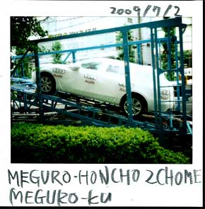 目黒通りを走っていて、アウディのディイラーの前でポラリました。車両運搬車から覆面をした車を下ろしていたからです。‥‥‥‥‥‥‥昔呼んだ梶山季之の「黒の試走車」という小説を思い出してしまいました。(古いかっ!)それは産業スパイの話なんですが、発表前の車を覆面で隠して試走すとかなんとか‥‥‥‥‥この覆面車はすでにディーラーに運んできたのですから、見られたくないワケではなく、単に保護の為なのでしょうか?それとも発売寸前まで隠したということでしょうか?わかりましぇ〜ん。‥‥‥‥‥運搬車にはこういうのが4台も乗っていたのです。結構気になりました。