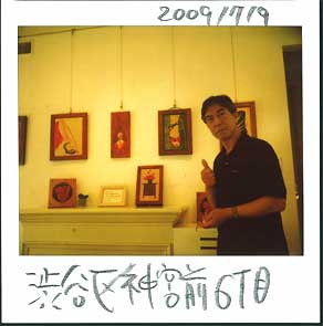 木工作家の友人、オオバが長野の山奥から出てきて、なんと都会の原宿で個展をやっていると言うではないですか。それも今日が最終日、覗かないわけにはいきますまい。‥‥‥‥‥‥‥やってまいりました。女房のお店のそばです。オオバは大学時代の友人で、かつては都会でデザイナーなどというものをやっていたのでした。「オオバ、こういうの始めて何年?」「7年かな。」‥‥‥‥‥‥‥彼の作品は図柄のパートごとに素材の木を切り抜いて、染めたり、レリーフ状に磨いたりして、また一枚の絵にもどしたもの、(分かりますか?そんなに複雑ではない)パズルのようなものです。「オオバさんは足フェチですか?なんて言われるんだけれどさ、そういうワケではないんだ。」と、本人は言います。絵柄はハイヒールの足であったり、靴そのものであったり、やはり足フェチのよう、いまいち僕にはわからない世界です。‥‥‥‥久しぶりの友人は元気そう、お互いの生存、再会をちかって、楽しい時間にピリオドを打ちましたとさ。