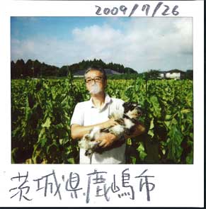 昨日の夜のこと、一軒家ってなにかと(ナゾの)音がするではないですか。ラップ現象とは言いませんが、虫が飛んできてぶつかってもカチンといいますし、昼間暖まっていた建材が夜になって冷えて軋んだり。アデはそれに神経質になって吠えるものですから、こっちが驚いてしまいます。よって寝不足ぎみであります。‥‥‥‥‥‥そんな今朝、散歩に出たときのポラリであります。‥‥‥‥‥僕とアデの背景はタバコ畑、(肩身の狭い)愛煙家としてはここで(くわえタバコで)ポラリずにははいきませんでした。(それもセルフタイマーで)ご存知ないかも知れませんが、タバコって意外と日本各地で作られているんです。ま、斜陽農作物であることは確かなのでしょうが。‥‥‥‥僕の口のまわりの白いモヤモヤは、エクトプラズマではありません。愛煙家の副流煙(ふくりゅうえん)であります。「恐がらなくて良いんだよ、アデ。」「恐くはないけれど、いやなんだワン。」