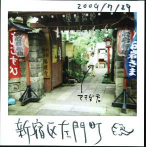 どろどろどろどろ〜‥‥‥‥‥‥マチダと赤坂の会社に打ち合わせに出かけました。マチダは沖縄出身、ついつい、東京生まれ/育ちの僕としては「石川観光バス」になってしまいます。(どういうことかと言うと)出かけた先々でマチダに向かって「右手をご覧くださ〜い。あちらに見えるのが○○○○でございま〜す。」って気分になってしまうということです。(あくまでも気分の話し、東京に関して知っている知識を吐露してしまうのです。)‥‥‥‥‥‥あの四谷怪談の、左門町の於岩稲荷に寄り道しました。「あのお岩さんの、小岩稲荷でございま〜す。」「道をはさんで両側にございますが、こっちのが正統でこちらのは明治になってから名乗っただそうで〜す。仲が悪いのだそうで〜す。」‥‥‥ポラリった方がニセモノ(?)の方のようです。‥‥どろどろどろどろ〜、夏にちなんだ話題でした。
