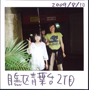 台風9号の影響なのでしょう、東京地方は朝から大雨です。‥‥‥‥‥‥‥土砂降りのランチは(いっそのこと)車で出てしまったりしちゃいます。駐車場のある代官山(と呼んでいいのでしょうか?代官山のはずれです。)のモンスーン・カフェに行きました。例によって夏休みの受験生も一緒です。‥‥‥‥‥お店に入る時に、駐車場入り口の上から、ザアザア滝のような雨水が落ちていました。それを除けるように、除けきれずに、濡れながら入店したのでした。‥‥‥「今日の、大雨の記録には、あの滝と人物をポラリしよう。」と、心に決めて海鮮焼きビーフンを食べ終えました。‥‥‥‥‥食事を終えたころは小降りになっていて、上からの落水もご覧のようにしょぼくなっていました。残念、行きに撮っておけば良かったと思っても‥‥‥‥しょうがないので誰かさんの立ち小便みたいな落水と「中目黒の三美人」を、しょぼくもポラりった次第であるます。40分前はひどい雨だったんですよ、ホント。